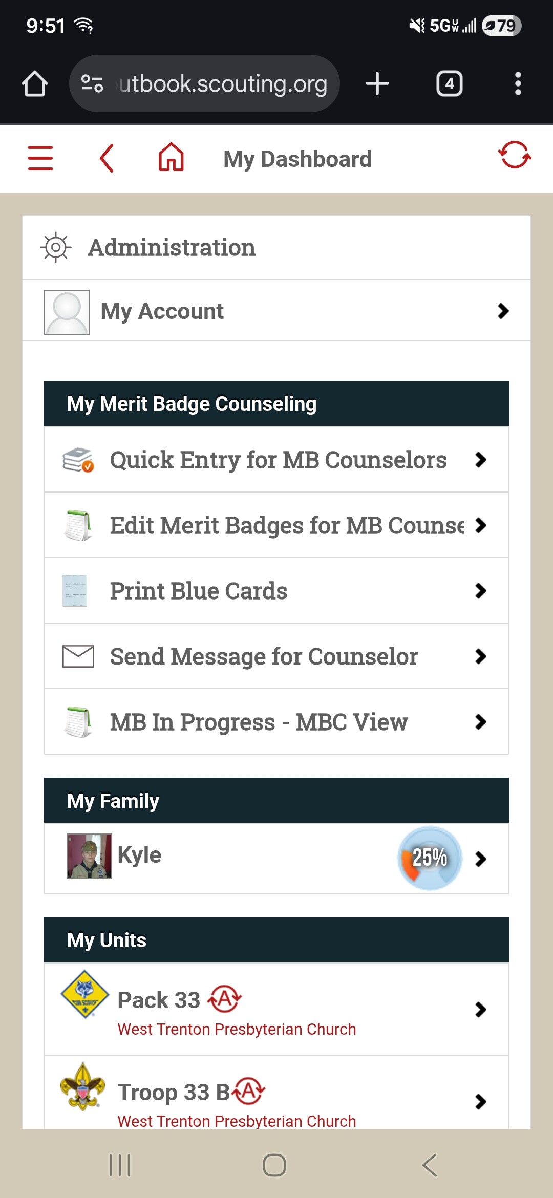 Detailed description of the issue: I have been assigned as merit badge counselor to two sisters. I am able to access one sister’s record, but get this message with the other: