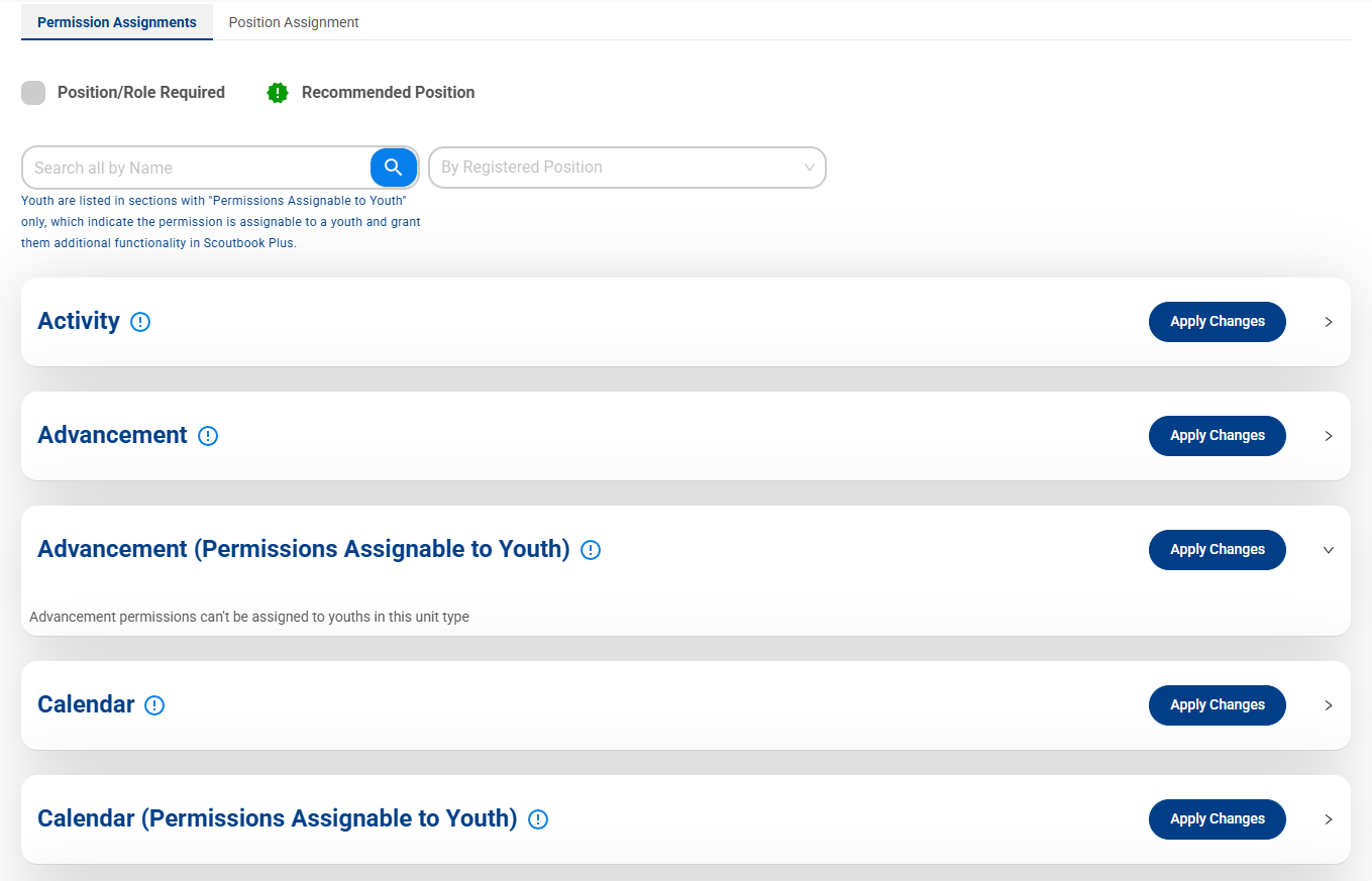 A major focus of the migration to Scoutbook Plus is to have positions mirror the positions shown in My.Scouting to ensure positions were reflected accurately in both platforms. The main purpose it to honor the guidance of our charter organizations and the positions they approve. Therefore, Scoutbook Plus does not use Legacy Scoutbook positions. Registered positions are used to provide base permissions. Some additional permissions can be added by the unit, however, there are restrictions on what can be given. See Scoutbook_Permissions.pdf and the Scoutbook Plus permissions video for more details.