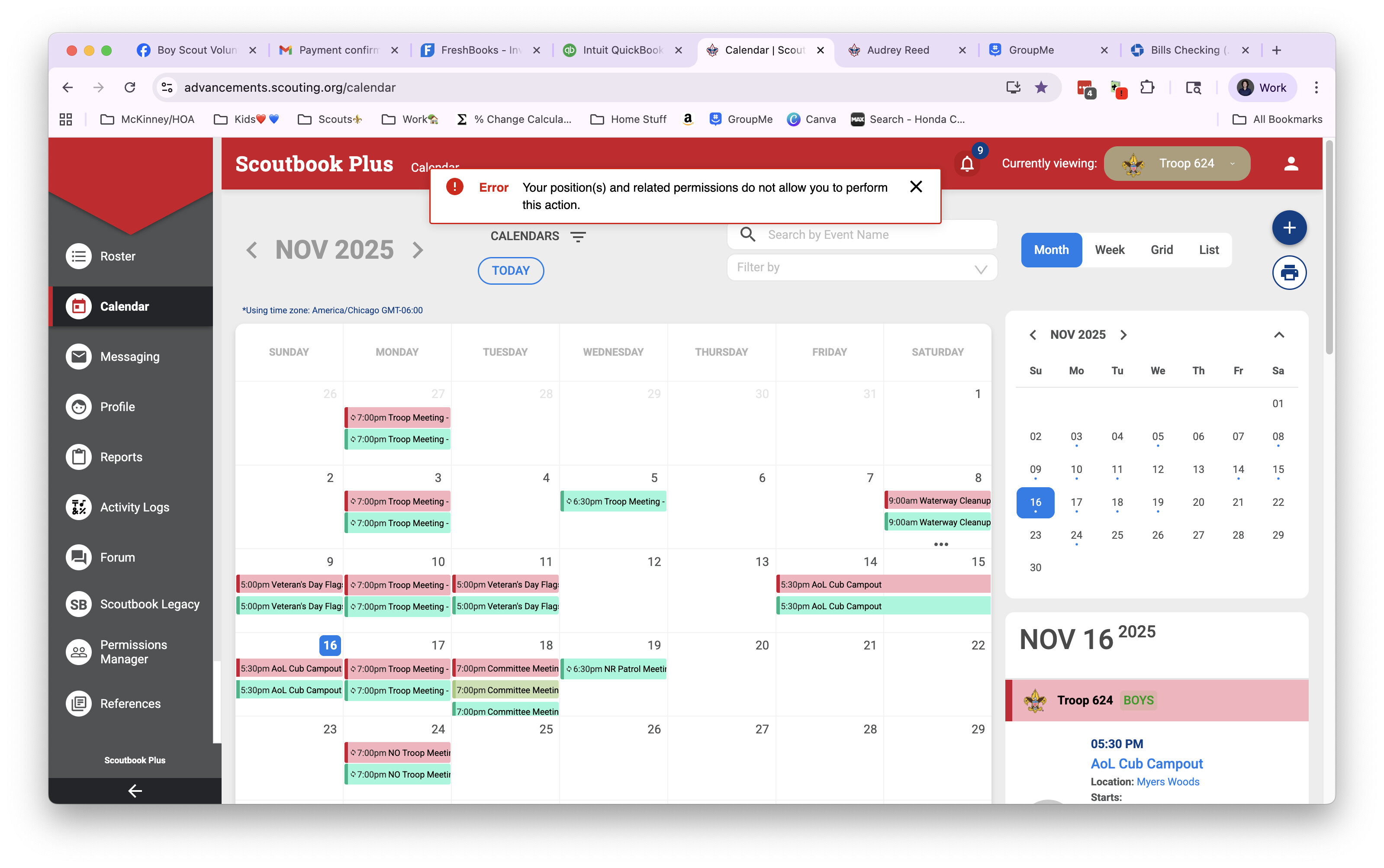 I can’t edit calendar events event though I’m a troop admin and was able to edit just a couple of weeks ago. What have I missed in recent changes and how do I fix it???