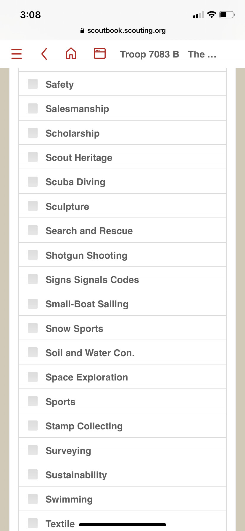 Hi! I was going to link a scout with the skating merit badge counselor, however, the skating merit badge is NOT listed in the merit badges. This needs to be updated in Scoutbook. Look under, scout connections where you link a counselor with a merit badge.