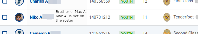 @JudsonStrom- thank you. That is good info that perhaps the SUAC folks can dig into what is happening. I do note the caution symbol on the one scout. And the prior MID’s. Might be something with that and multiple scoutbook user id’s.