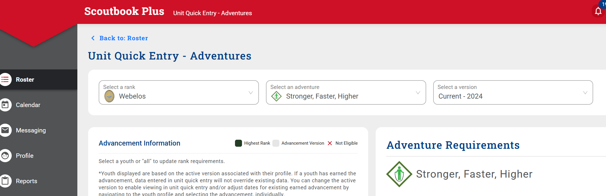 We have two Webelos Dens. I’d like to be able to select by Den to quick entry all the requirements. Currently you can only select by rank, which includes the other den. This would be helpful so I can use the Select All feature.
